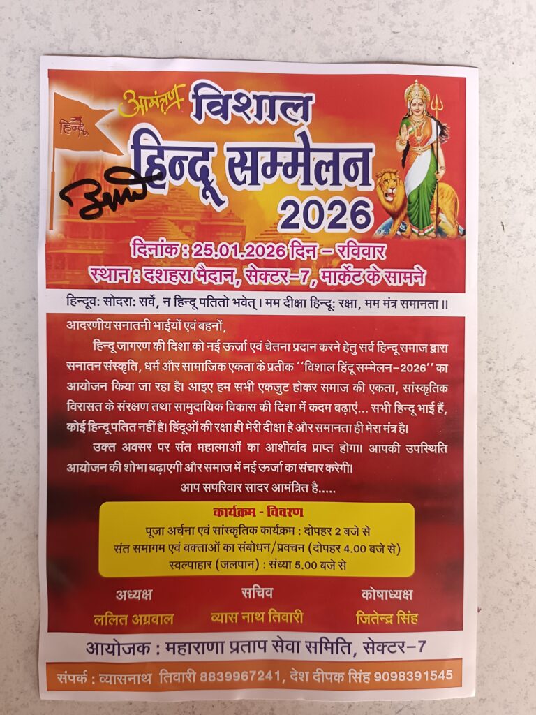 भिलाई में 25 जनवरी को विशाल हिंदू सम्मेलन सेक्टर 7 दशहरा मैदान में । सध्या 5 बजे से स्वलपाहार जलपान भी)