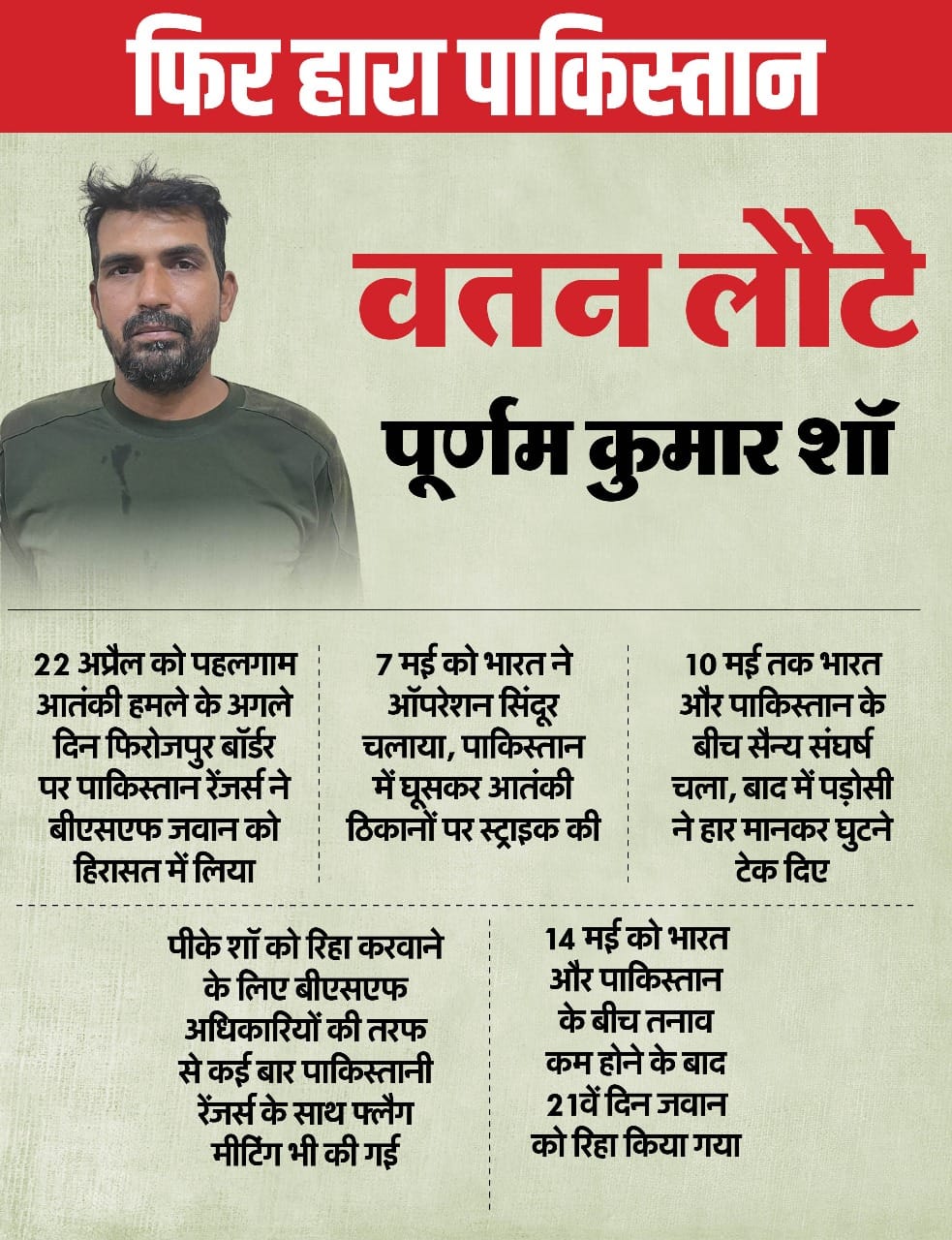 यह भी पढ़ें- बीएसएफ जवान की वतन वापसी: पीके साहू ने 22वें दिन रखा सरजमीं पर पांव, पहलगाम हमले के बाद पाकिस्तान ने पकड़ा था