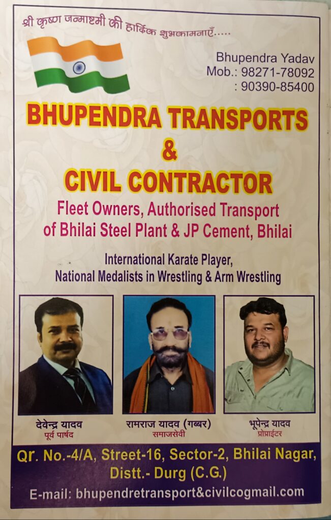 श्री कृष्णा के मंगल आयोजन के अवसर पर आयोजित जन्माष्टमी पर्व में आप सब परिवार उपस्थित होकर कार्यक्रम की शोभा बढ़ाने के लिए कार्यक्रम पधारे अतिथिगण सांसद दुर्ग विजय बघेल जी विधायक वैशाली नगर रिकेस सेन जी ,खादी ग्राम उद्योग के अध्यक्ष राकेश पांडेजी , भाजपा के प्रदेश महासचिव जितेंद्र वर्मा जी, हैवी ट्रांसपोर्ट कंपनी के डायरेक्ट रइंद्रजीत सिंह छोटू लल्लू भाई व उनके सारे ग्रूप के अलावा समस्त सम्मानीय अतिथियों को यादव कल्याण परिषद सेक्टर 7 भिलाई की ओर से आभार व्यक्त करता करता है। हरेंद्र यादव अध्यक्ष एवं समस्त कार्यकारिणी एव सदस्यगण ।